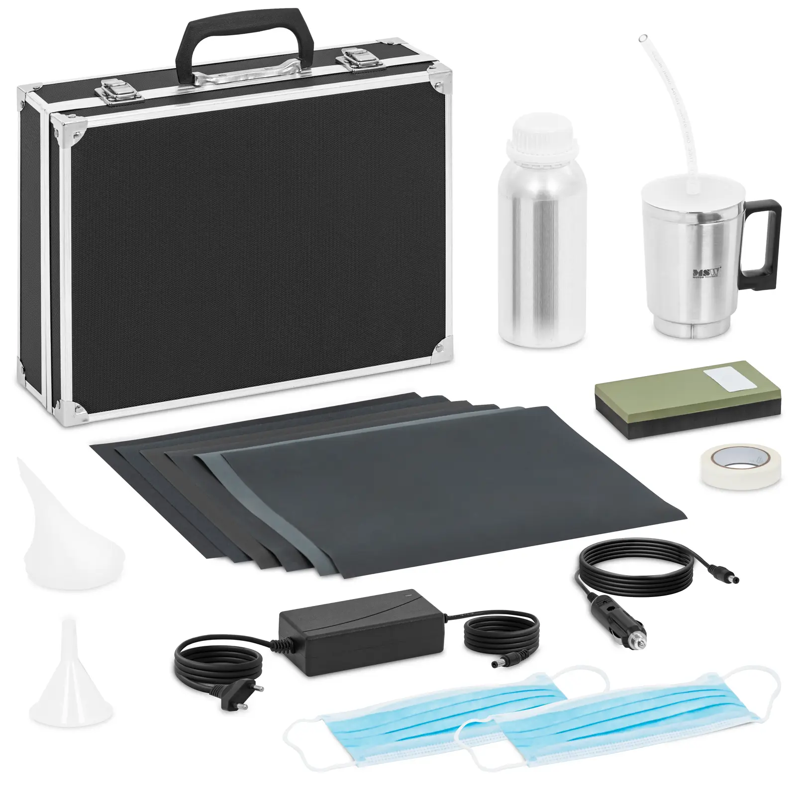 S kompletom za popravilo žarometov MSW lahko učinkovito odpravite praske, porumenelost, motnost, oksidacijo in druge znake starosti na žarometih. Celoten komplet s skodelico za paro, brusnim papirjem, maskami, tekočino za popravilo in še veliko več je hitro pripravljen za uporabo in enostaven za uporabo. Zato je komplet za poliranje žarometov idealen tako za delavnice in profesionalne servise kot tudi za avtomobilske navdušence, ki žaromete pripravljajo sami doma.