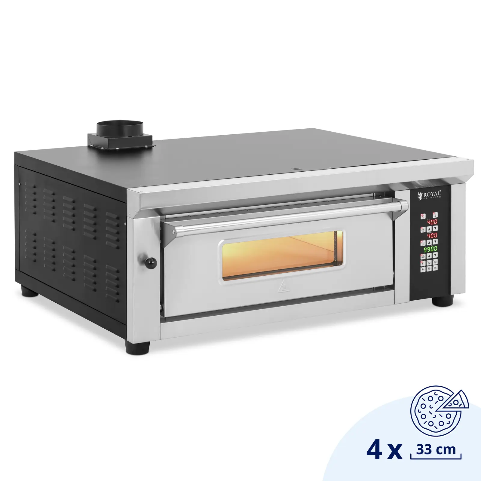 Električna pečica za pico - 4 x 33 cm - 1 komora - 4200 W - digitalna - šamotni kamen - Royal Catering